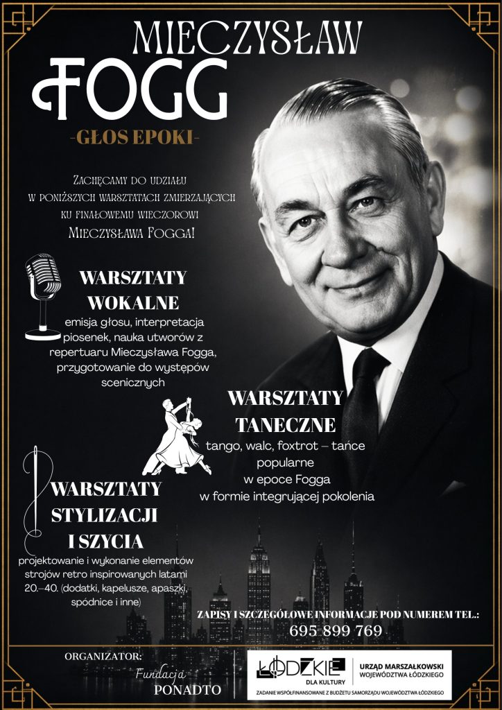 Przygotowaliśmy wyjątkowy cykl warsztatów inspirowanych twórczością jednego z najwybitniejszych artystów polskiej sceny. Mieczysław Fogg zachwycał elegancją, niepowtarzalnym stylem i emocjonalną interpretacją piosenek, które do dziś poruszają kolejne pokolenia.
